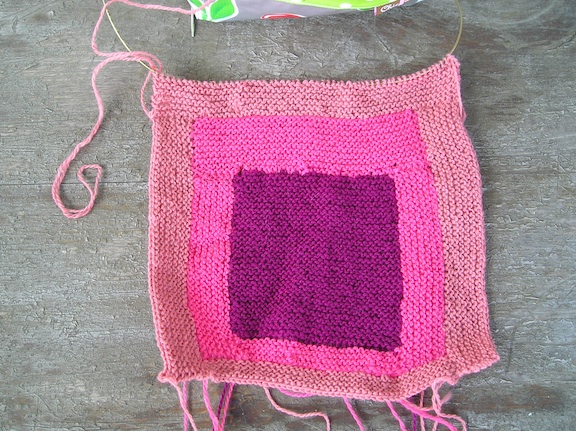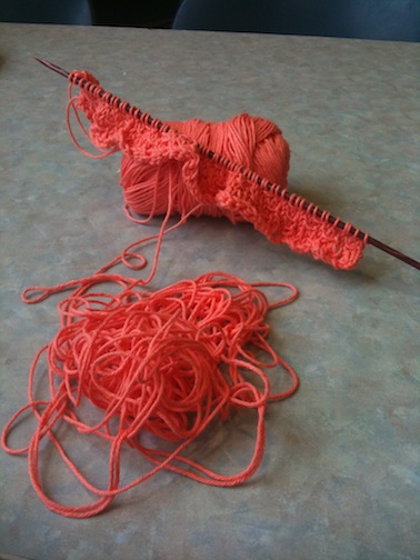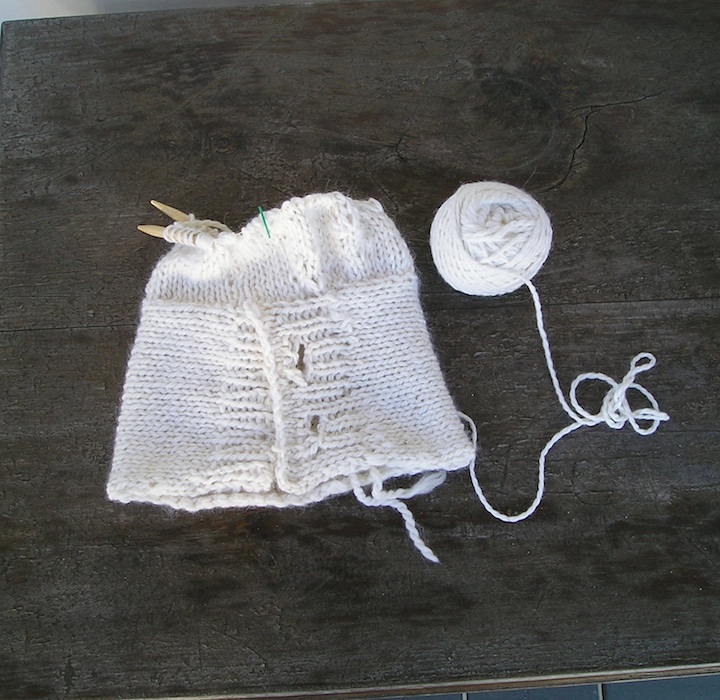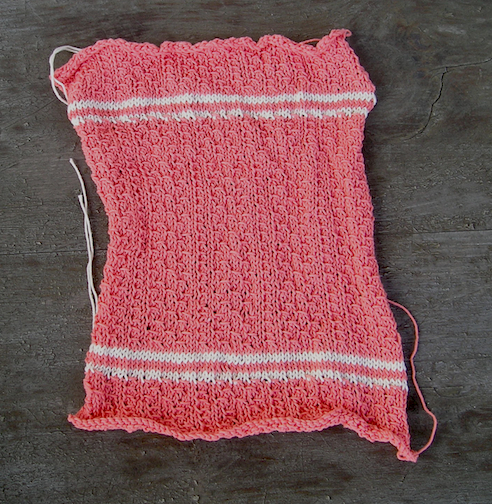 Last week I was complaining that it was unseasonably cool. Now we’re having a heat wave and it’s been 90 degrees every day since Tuesday. And I’m still unhappy. So I guess that means I’m just never happy, weather-wise. What can I say, I’m a complainer! Knitting with cotton is fine for warm weather, but what should I make when the towels are done? I have Ann Weaver’s Partition Cardigan on deck, but I’m not sure I want to knit it during the summer. Yet I want to wear it in the fall. I’ll probably end up casting on for the cardigan next anyway, with thoughts of cool autumn weather and walks in the park among the changing leaves to keep me cool while I knit.
