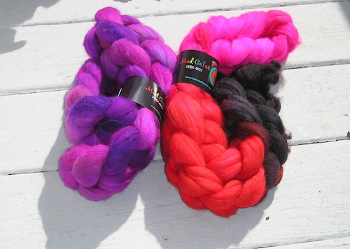 I bought two colorways of Mad Color, a superwash merino/nylon/wool top in bright