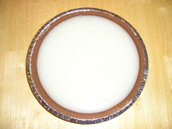 On to the vegan baking. Behold my lemon pie made with Ener-G egg replacer (Shhhh: it’s made from potato starch!) 😉 These days I guess I would call myself half-vegetarian, half-vegan. I appreciate the reasons for going vegan, and I’m all for creating a healthy meal using exclusively plant-based foods, but veganism is very challenging. And let’s face it, sometimes I crave cheese! I can usually break the week up into all-vegan days mixed with cheese/dairy days. This pie is from the back of the Ener-G box, and takes some lemon juice, sugar and water. It’s poured into a pre-baked pie crust and served chilled. I’ve made other lemon pies, and I like using chocolate pie crusts with lemon filling. Lemon and chocolate work so nicely together, and it’s a somewhat unexpected combination.