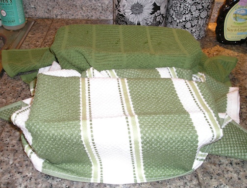 Cover with clean dishtowels and let the bread rise to double its original height.